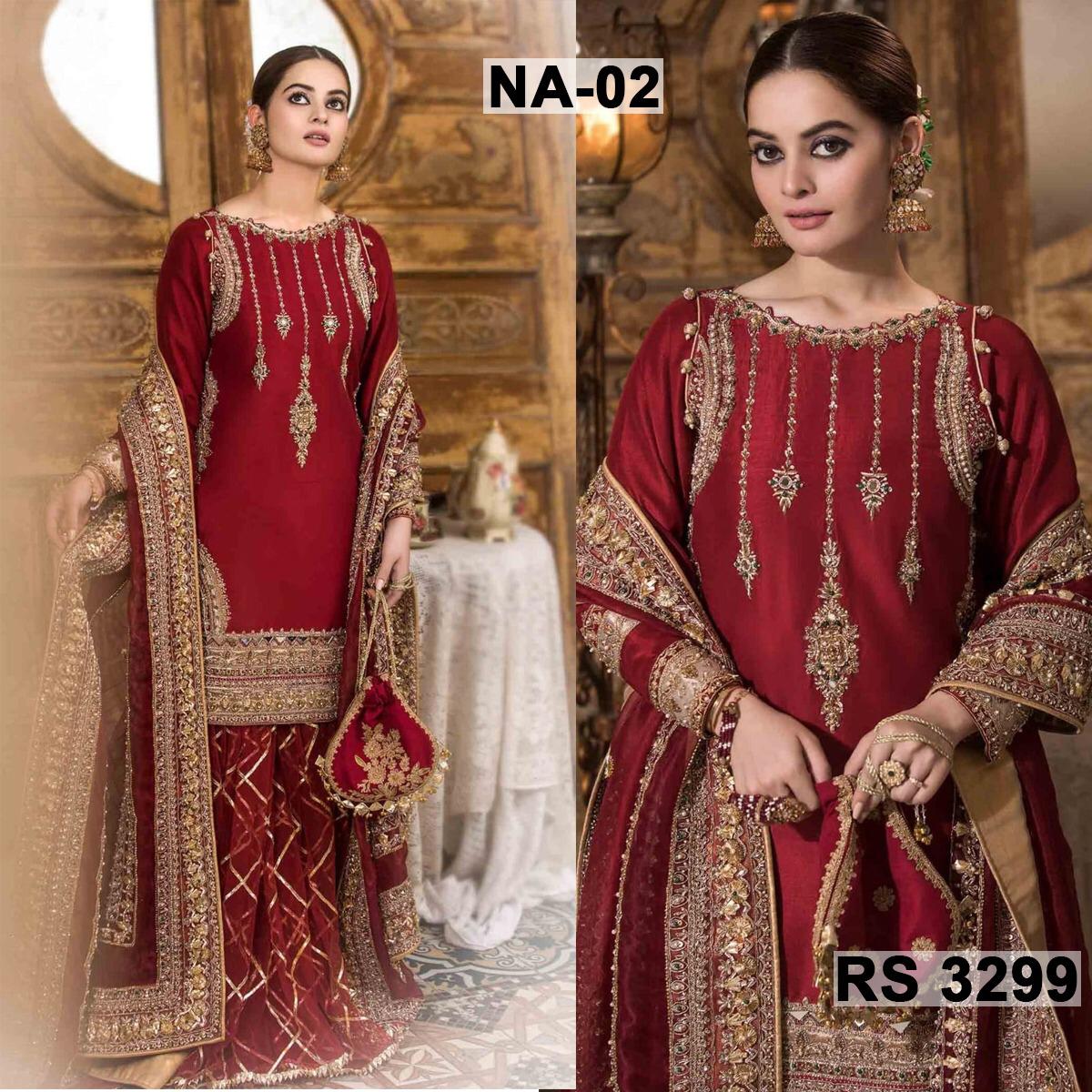 – Heavy Handwork Embroidered Chiffon Sleeves